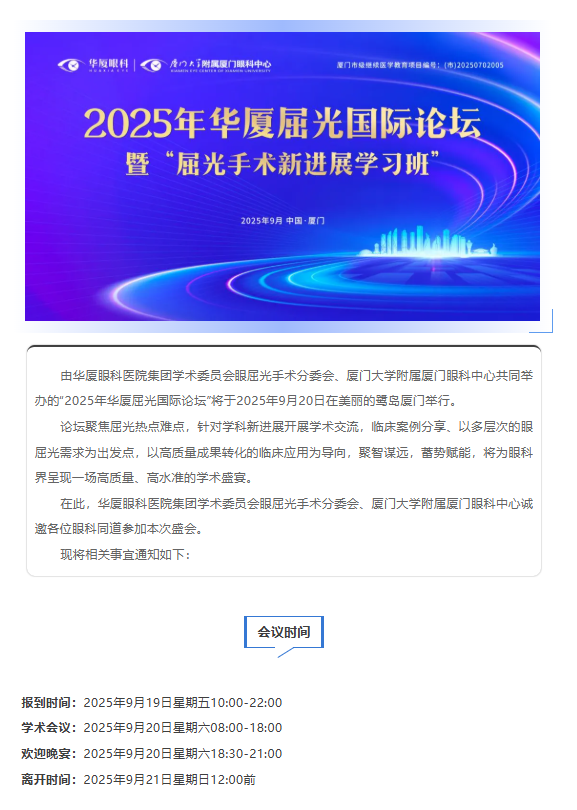 【会议通知】2025年金沙9001以诚为本屈光国际论坛——暨厦门市级继续医学教育项目“屈光手术新进展学习班”
