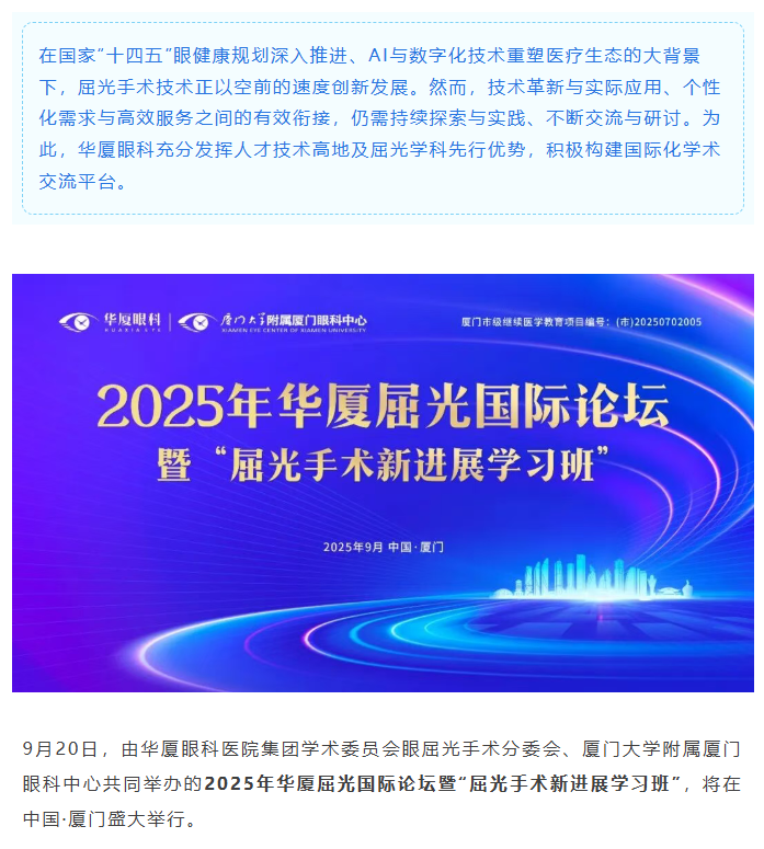 亮点预告 | 2025年金沙9001以诚为本屈光国际论坛9月20日厦门启幕
