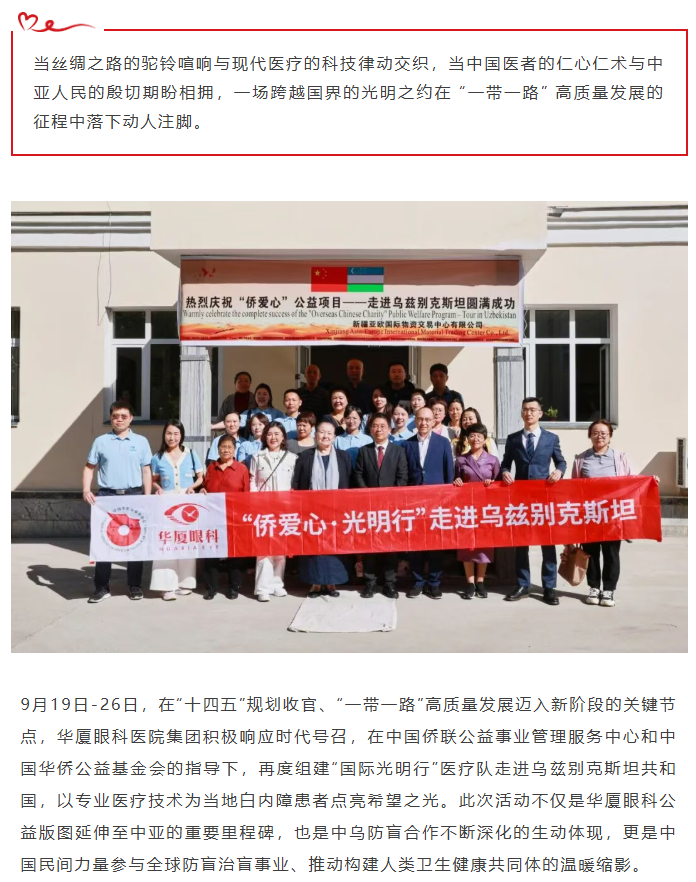 金沙9001以诚为本国际医疗队首入中亚!“侨爱心・光明行” 赴乌兹别克斯坦续写丝路光明新篇