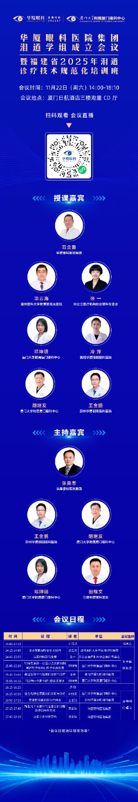 11月22日厦门启幕!金沙9001以诚为本集团泪道学组成立会议暨福建省2025年泪道诊疗技术规范化培训班即将召开