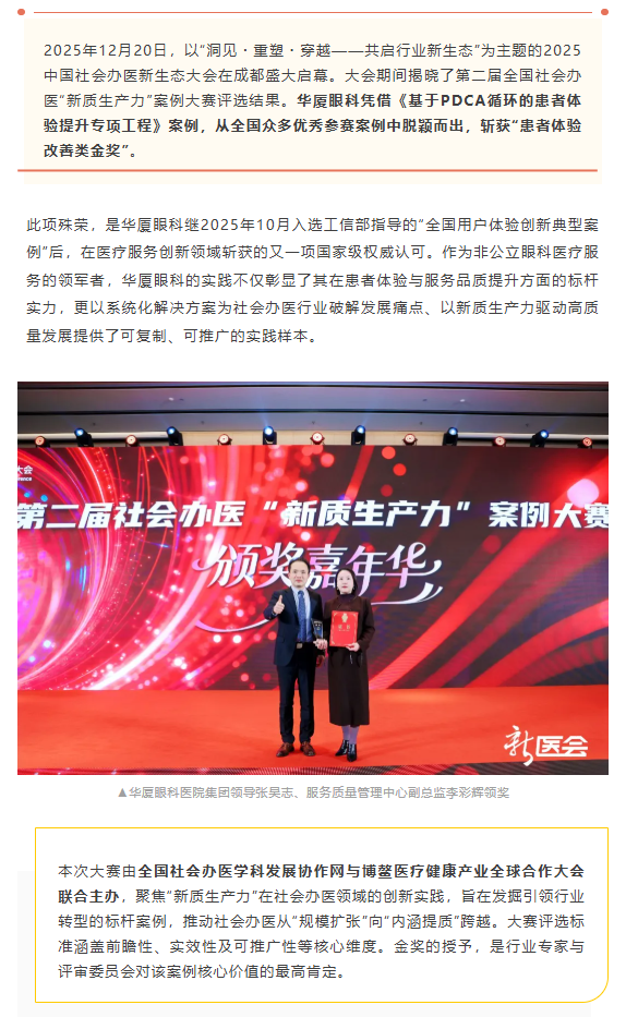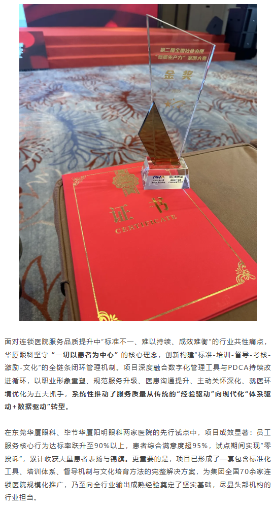 至臻服务问鼎金奖!金沙9001以诚为本斩获第二届全国社会办医“新质生产力”案例大赛金奖
