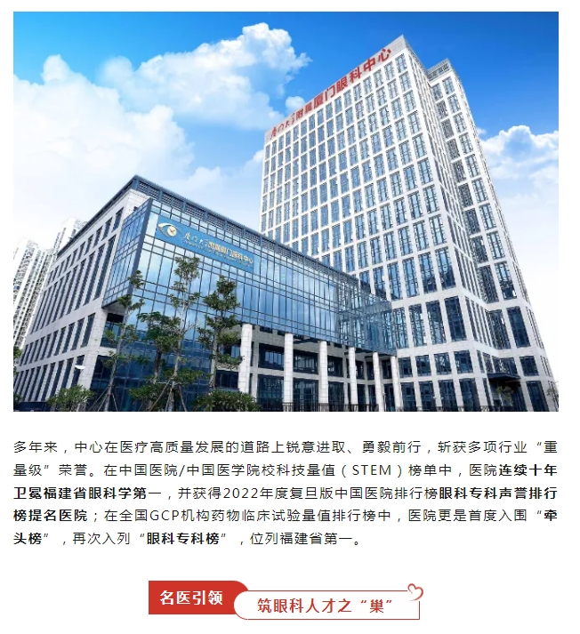 福建第一,全国16!复旦医院排行榜公布,厦门眼科中心获眼专科声誉排行榜提名!
