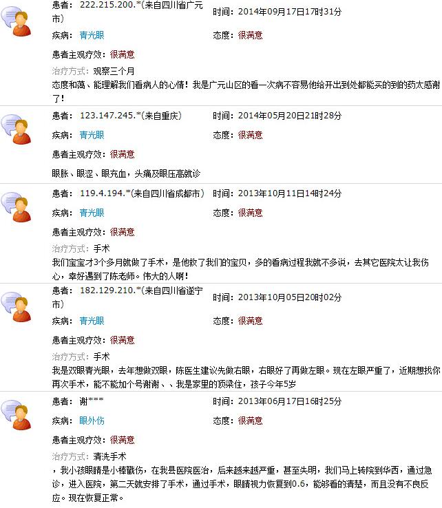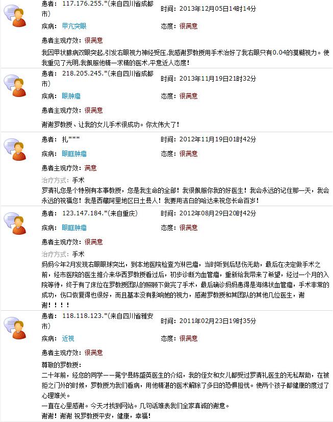 成都金沙9001以诚为本院长陈晓明教授、业务院长罗清礼教授网上患者评价