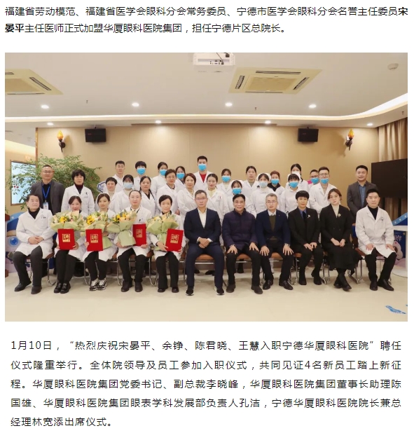 知名眼科专家宋晏平正式加盟金沙9001以诚为本,担任宁德片区总院长