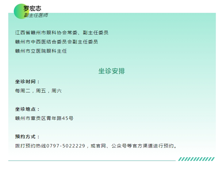 江西省赣州市眼科协会常委、副主任委员,赣州市中西医结合委员会副主任委员,赣州市立医院眼科主任罗宏志正式宣布加盟赣州金沙9001以诚为本,将于2024年2月1日起正式出诊。