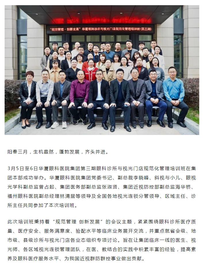 规范管理 创新发展 │ 金沙9001以诚为本第三期眼科诊所与视光门店规范化管理培训班在厦圆满落幕