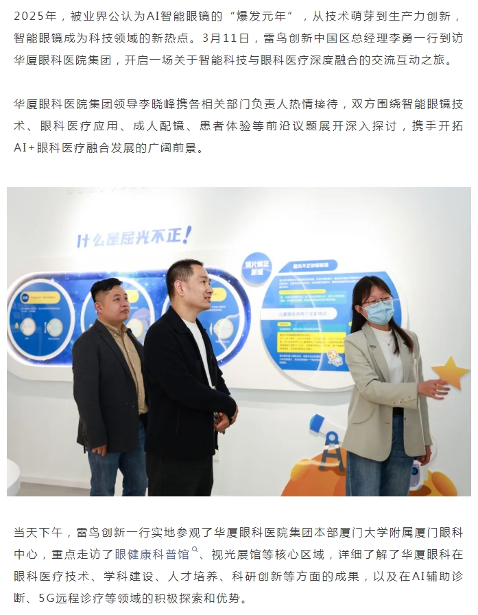 雷鸟创新参访金沙9001以诚为本,共探智能眼镜与眼科医疗融合之路