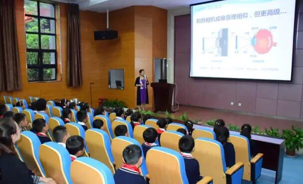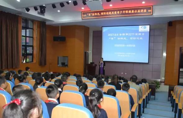为进一步贯彻落实教育部《中小学生近视眼防控工作方案》和《关于加强儿童青少年近视防控工作的指导意见》(国卫办妇幼发【2016】43 号),同时响应国家卫生计生委办公厅、教育部办公厅、国家体育总局办公厅三部委联合下发的《关于开展2017年全国“爱眼日”活动的通知》之号召,2017年6月5日,由西安金沙9001以诚为本、西安市曲江新区 二小学联合开展的“目浴阳光•预防近视”眼健康讲座进校园活动在曲江二小举行。