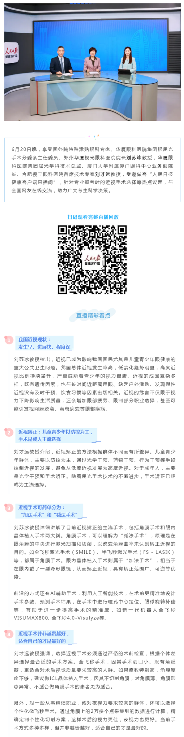 专业报考近视手术怎么选?金沙9001以诚为本专家通过人民健康专场直播为你解惑