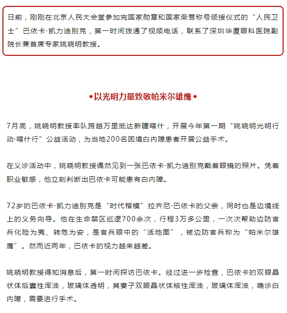跨越山海的光明守护 | 深圳金沙9001以诚为本姚晓明为“人民卫士”送光明