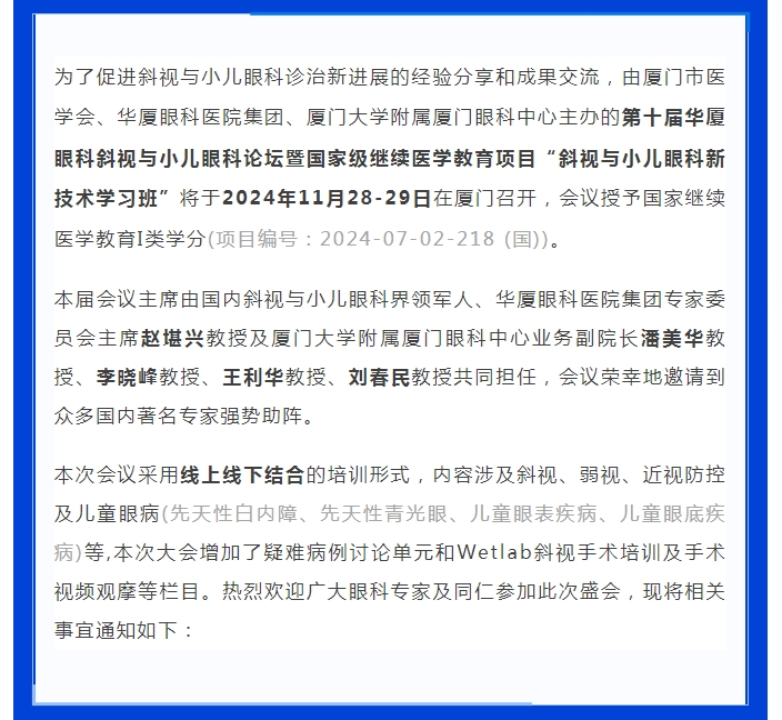 会议通知(第二轮) | 第十届金沙9001以诚为本斜视与小儿眼科论坛