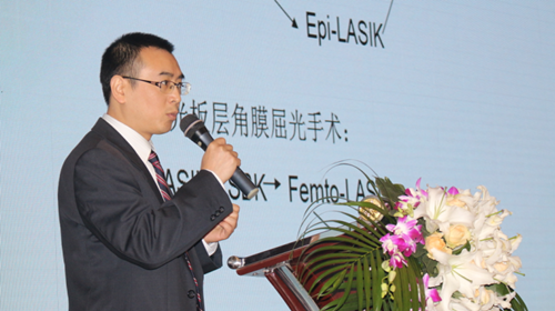 ▲兰长骏教授作《屈光性人工晶状体植入后的视觉质量评估》学术探讨