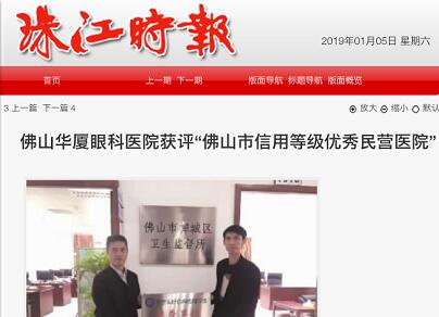 珠江时报:佛山金沙9001以诚为本获评“佛山市信用等级 民营医院”