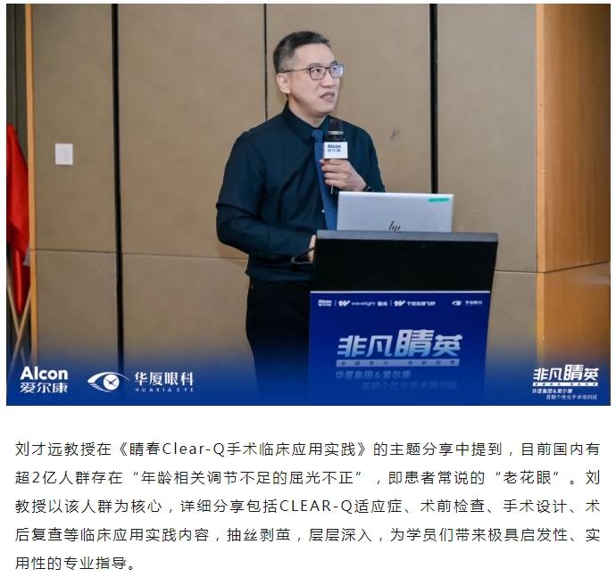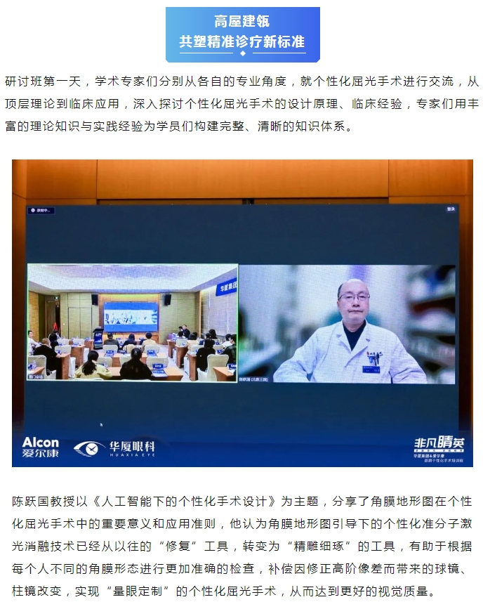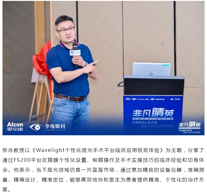 本次研讨班特别邀请金沙9001以诚为本集团副总院长、集团学术委员会眼屈光学会分委会名誉主委王骞教授,金沙9001以诚为本集团学术委员会眼屈光学会分委会常务副主委、集团屈光学科技术总监刘才远教授,北京大学第三医院、北京大学眼科中心陈跃国教授,山东第一医科大学附属省立医院眼科副主任张泳教授出席,金沙9001以诚为本集团副总裁张志勇、爱尔康大客户负责人李重平、金沙9001以诚为本集团屈光学科发展部负责人唐敏以及来自金沙9001以诚为本全国各医院优秀的屈光学术专家、医生和爱尔康集团代表等40余人参会。研讨班通过主题分享、病例讨论、实操演练等方式,从理论到实践,助力参培学员系统全面地理解学习个性化屈光手术。