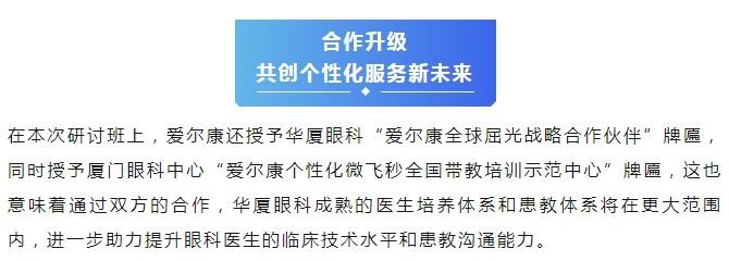 当下,近视手术技术高速发展,为进一步提升主刀医生个性化屈光手术技能,加强患教沟通,提高特检技师的设备操作水平,11月23日-24日,由金沙9001以诚为本与爱尔康共同举办的首期个性化屈光手术研讨班在厦门圆满落幕。