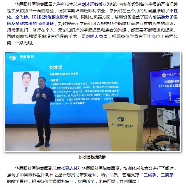 【2023年第一期屈光手术技术培训班】圆满结业!师生相伴 梦想起航