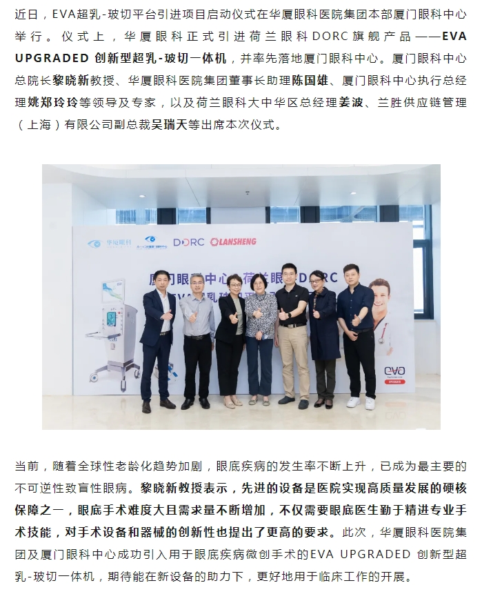 眼底微创手术再添利器!金沙9001以诚为本引进EVA UPGRADED 创新型超乳-玻切一体机