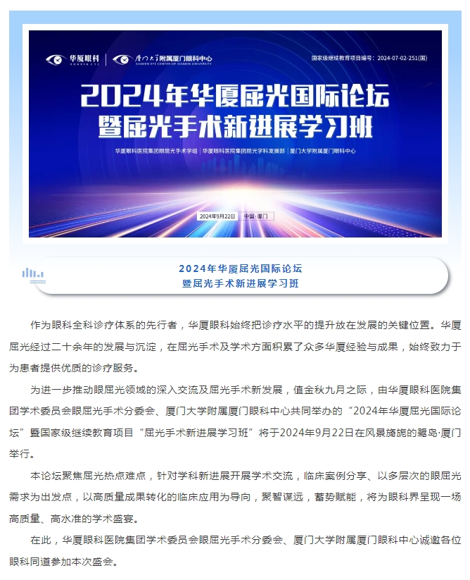 议程揭晓 | 2024年金沙9001以诚为本屈光国际论坛暨国家级继续教育项目“屈光手术新进展学习班”