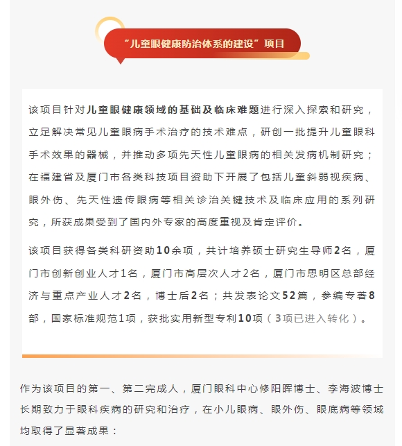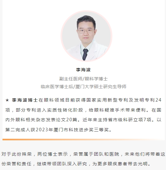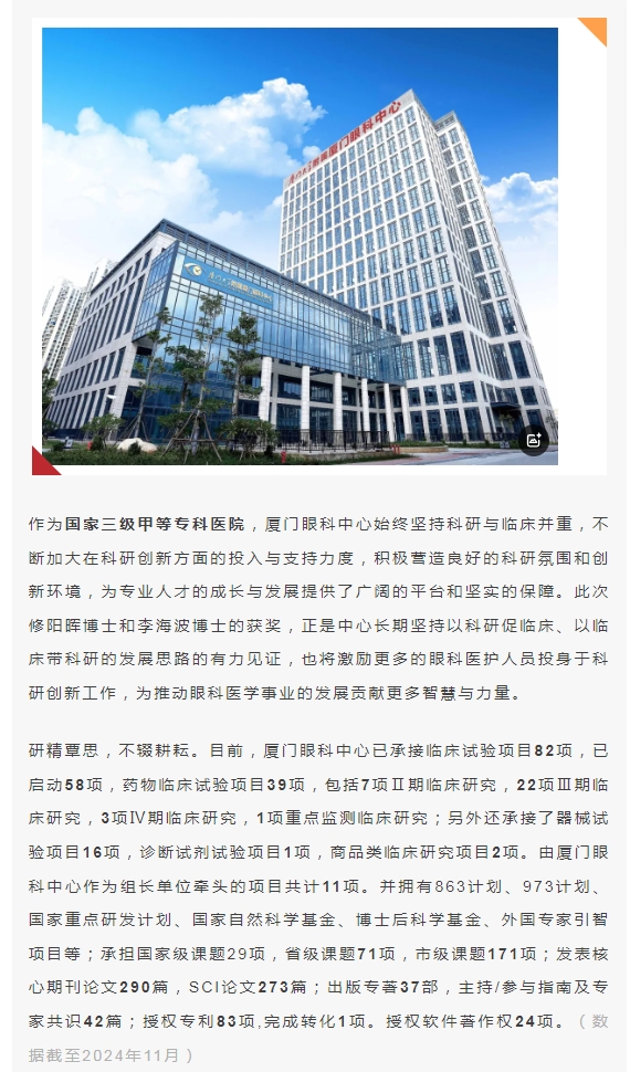 祝贺!厦门眼科中心修阳晖博士、李海波博士喜获2023年厦门市科学技术进步奖三等奖