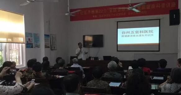 5月26日,台州五官科医院“全国爱眼日系列活动”——关爱眼健康知识讲座在星洲社区顺利进行,本次活动由台州五官科医院、葭沚街道星洲社区居委会联合开展。