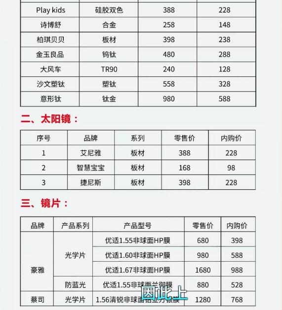 活动时间12月15日-12月18日优惠内容全场5折,不容错过:全场超低内部折扣售卖商品:太阳眼镜、品牌光学框、光学镜片、变色片、染色片(以太阳镜为主)。配镜打折, 验光现场 建立眼健康档案,可 享有3次眼健康体检。