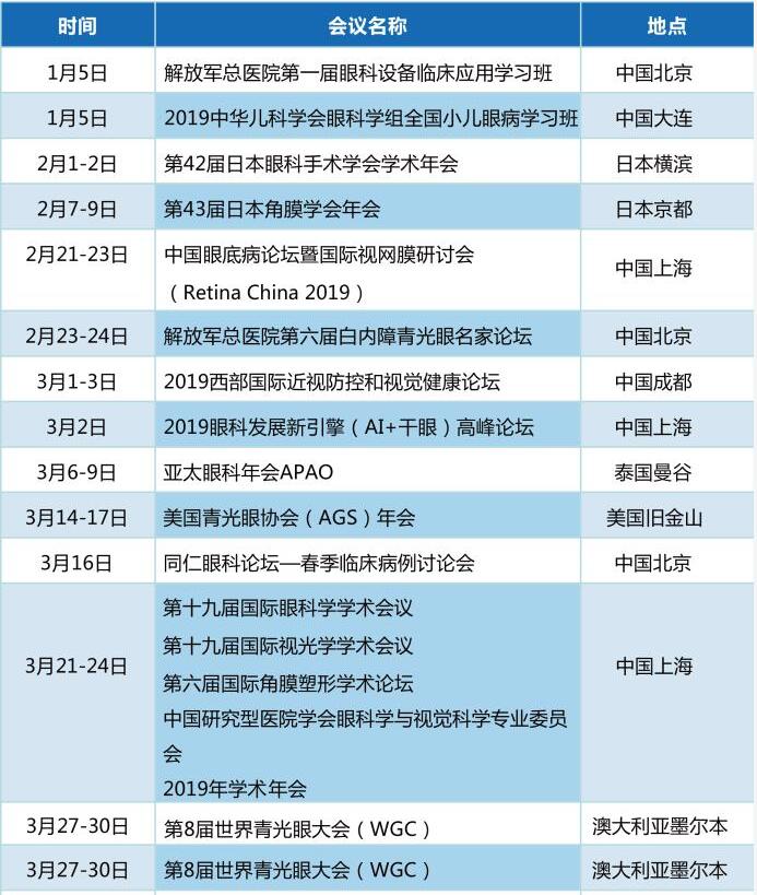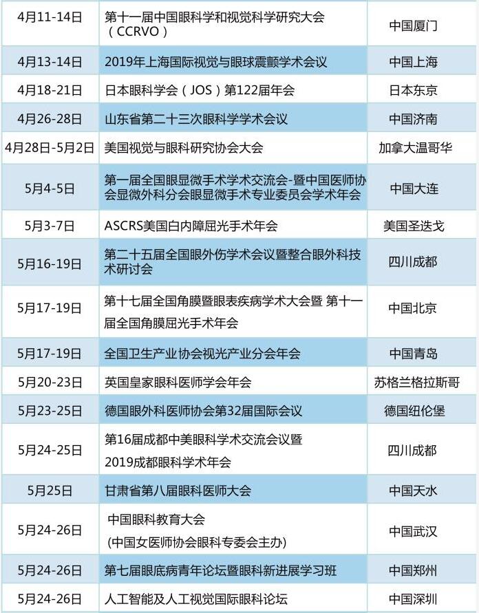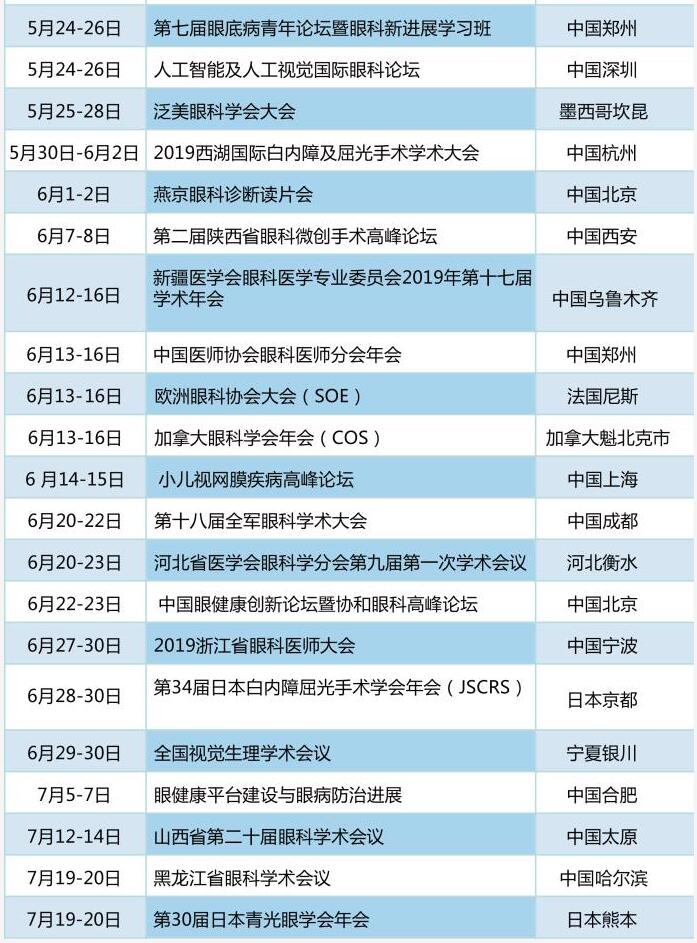 金沙9001以诚为本学术资讯:《眼界》2019年国内外眼科会一览表